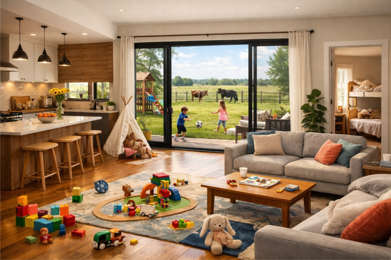 Für Familien mit Kindern. Sichere Umgebung, Zugang zu Natur und Tieren.